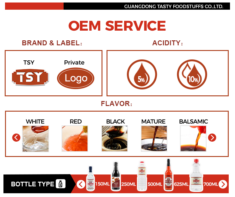 R: Nosso vinagre de arroz preto padrão tem um nível de acidez de aproximadamente 4,0-5,0%. Este nível proporciona um equilíbrio perfeito entre sabor picante e suave, tornando-o versátil para uma ampla gama de aplicações culinárias. Também podemos personalizar o nível de acidez para pedidos OEM.