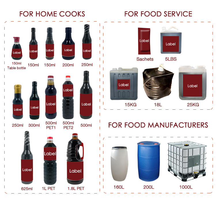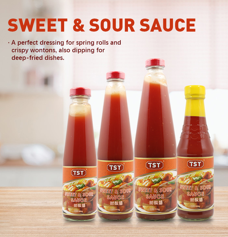 Para usos diferentes, as pessoas podem escolher molho doce e azedo em diferentes tamanhos de garrafas, como 250 ml, 280g e assim por diante, para cozinhar em casa, 1Gal, 5L para o restaurante.